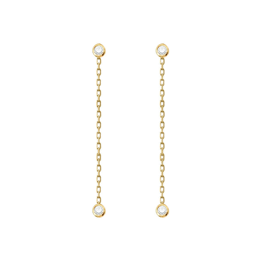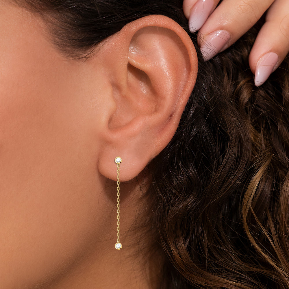 This charming heart-shaped birthstone earring has the perfect subtlety for everyday wear. Made of gold, this delightful piece is suitable for casual occasions. It features a shiny, glossy finish and a long chain. Choose your stone depending on your birth month!