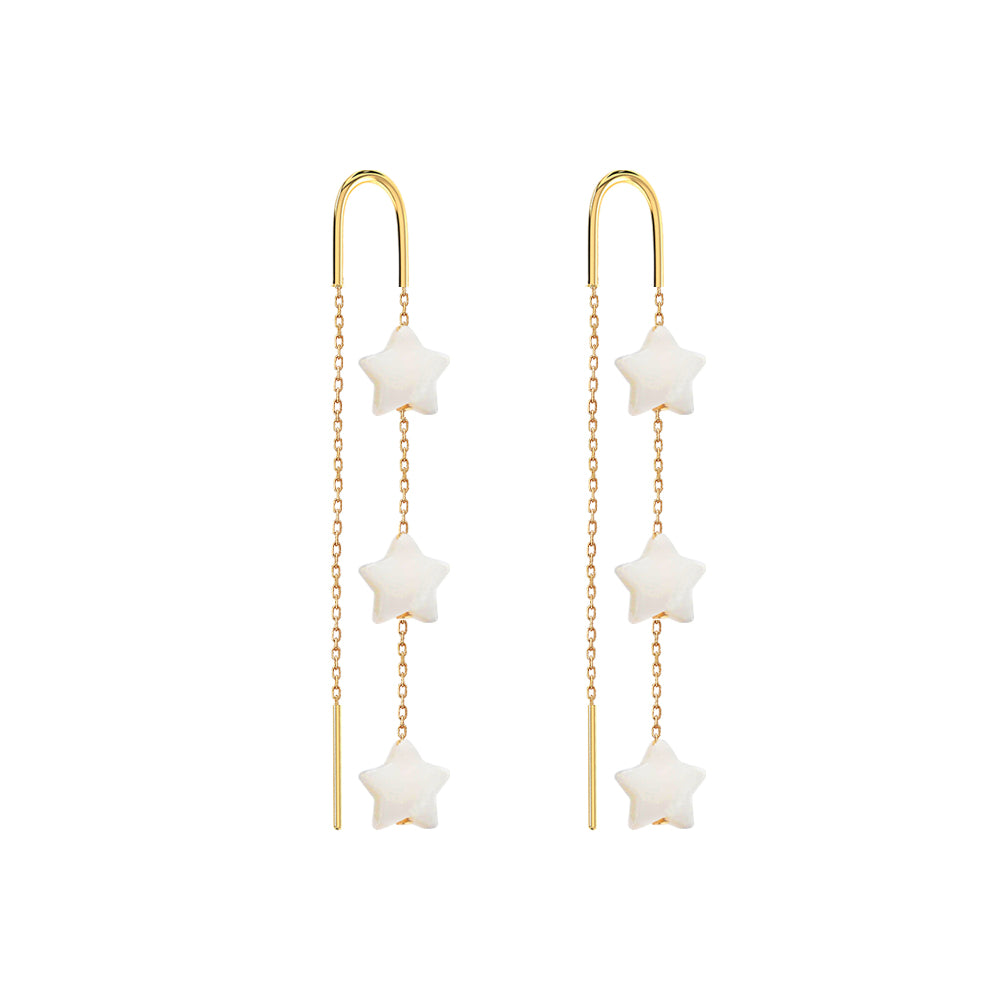 These earrings are set with a pair of striking gold hematite star stones in a dark gray color. The finish is extremely shiny, giving the stones an extra luxurious feel. The front and back chains are 4cm long to fasten securely around the earlobe. Exclusively designed and crafted by our experienced craftsmen, these stunning jewelry pieces will ensure you receive the right attention every time you wear them!