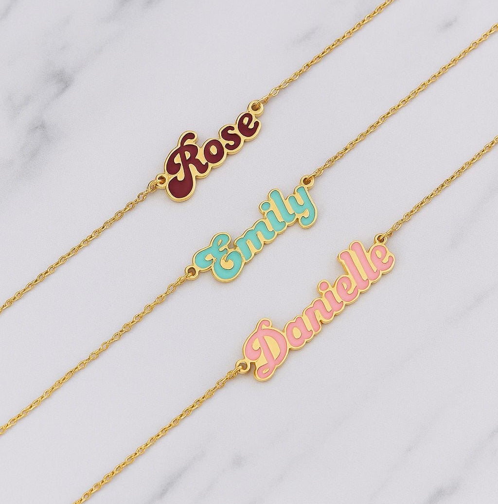 Add the Name you want to customize in the message box after adding the item to your cart.
