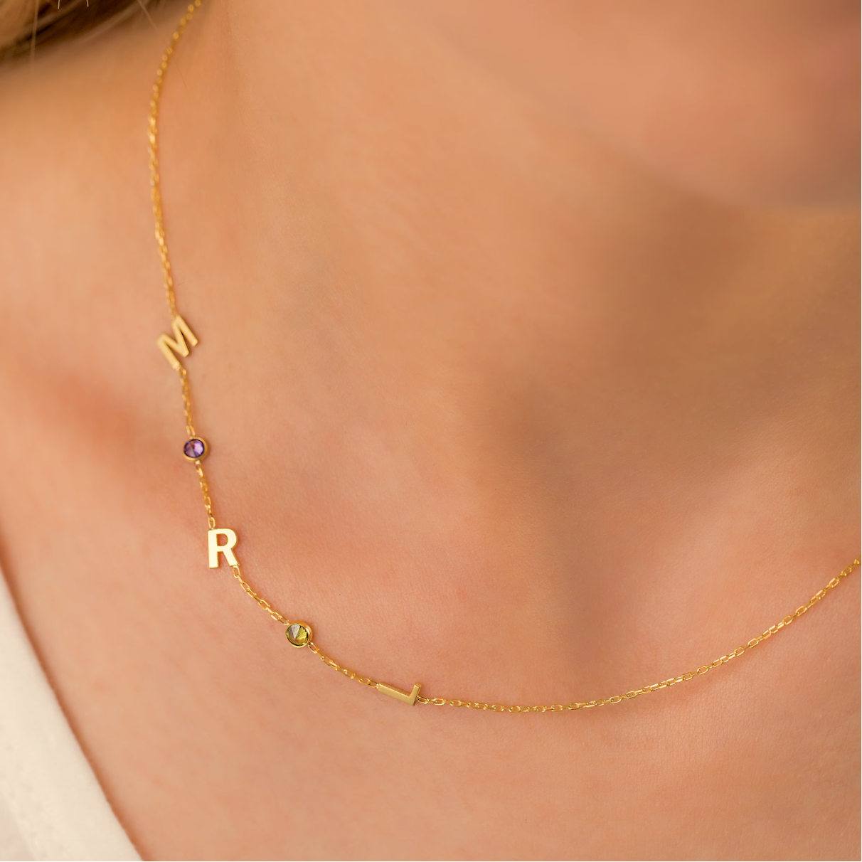 Chic appeal with this 18Kt Gold Initial x Birthstone Necklace