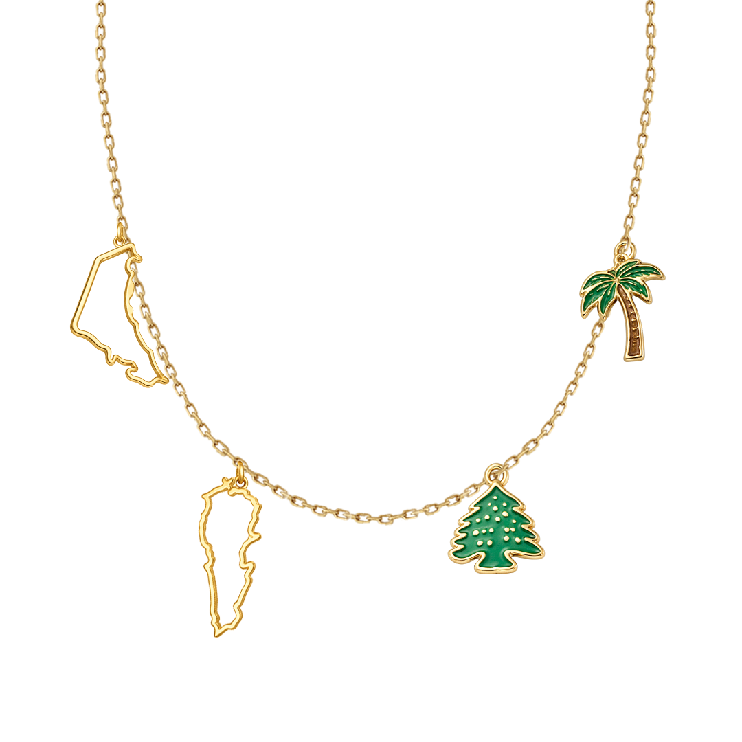 Chic appeal with this 18Kt Gold enamel maps necklace.