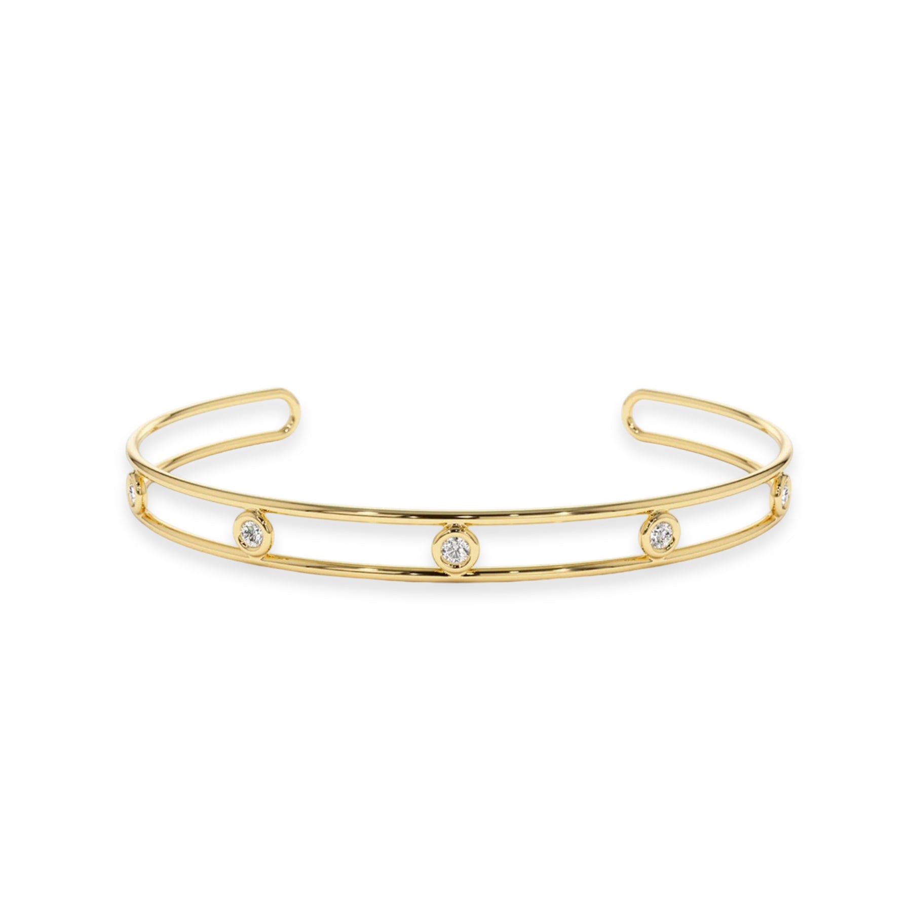 Luxury never goes out of Fashion, enhance your style with this 18Kt Gold diamond Bangle.