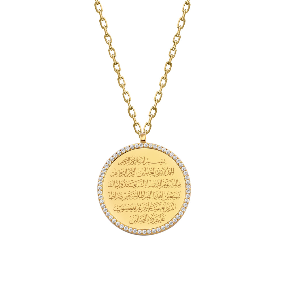 Chic appeal with this Yellow 18Kt Gold Diamond Ayatul Kursi Necklace