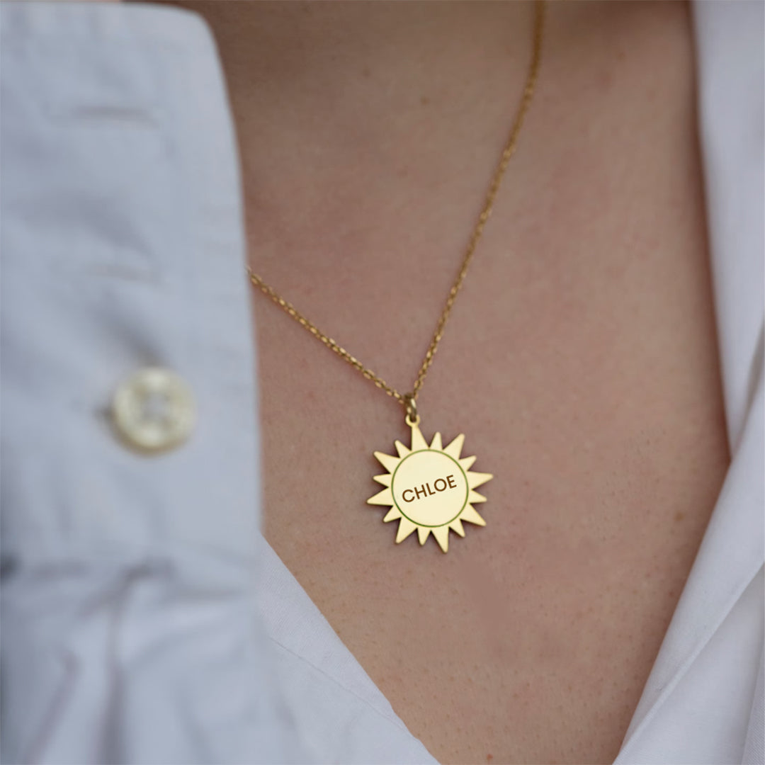 Chic appeal with this 18Kt Gold Sun jewelry necklace.