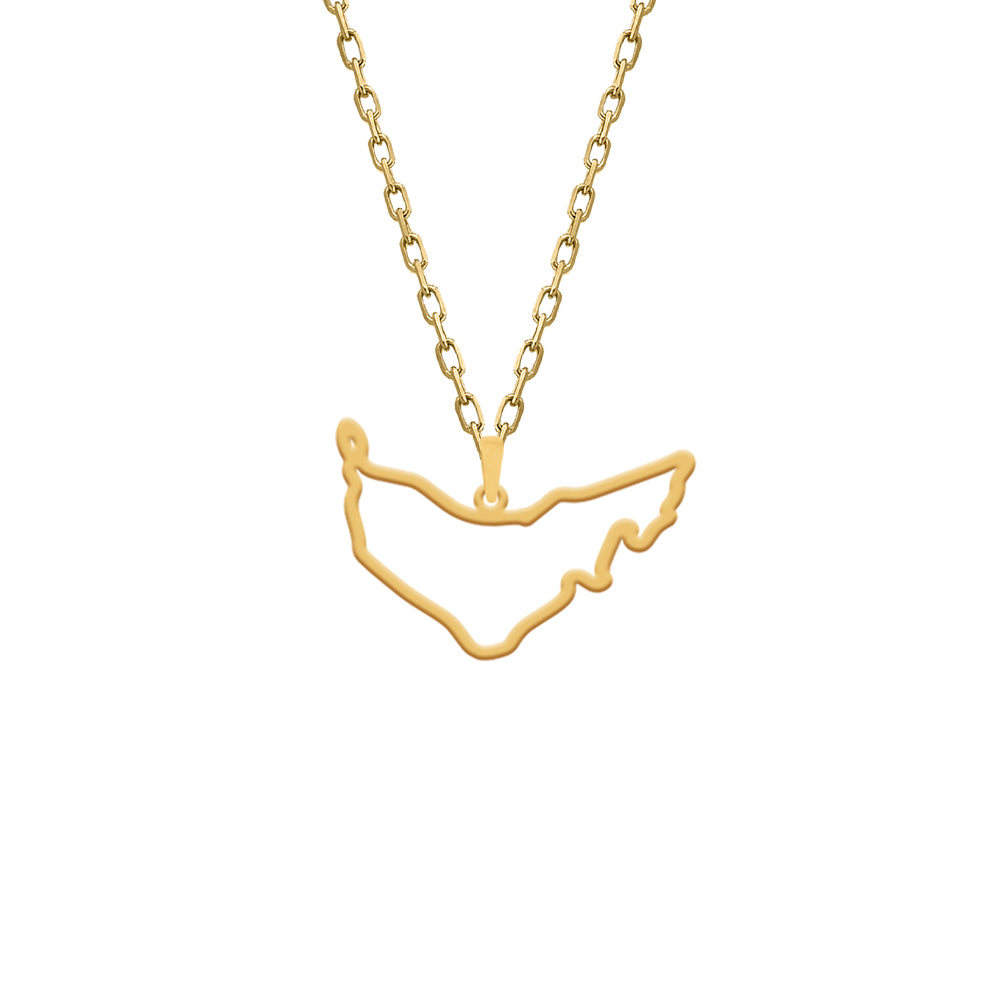 Chic appeal with this 18Kt Gold Lebanese Map Necklace.