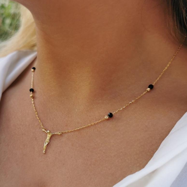 Chic appeal with this 18Kt Gold statement Cross necklace