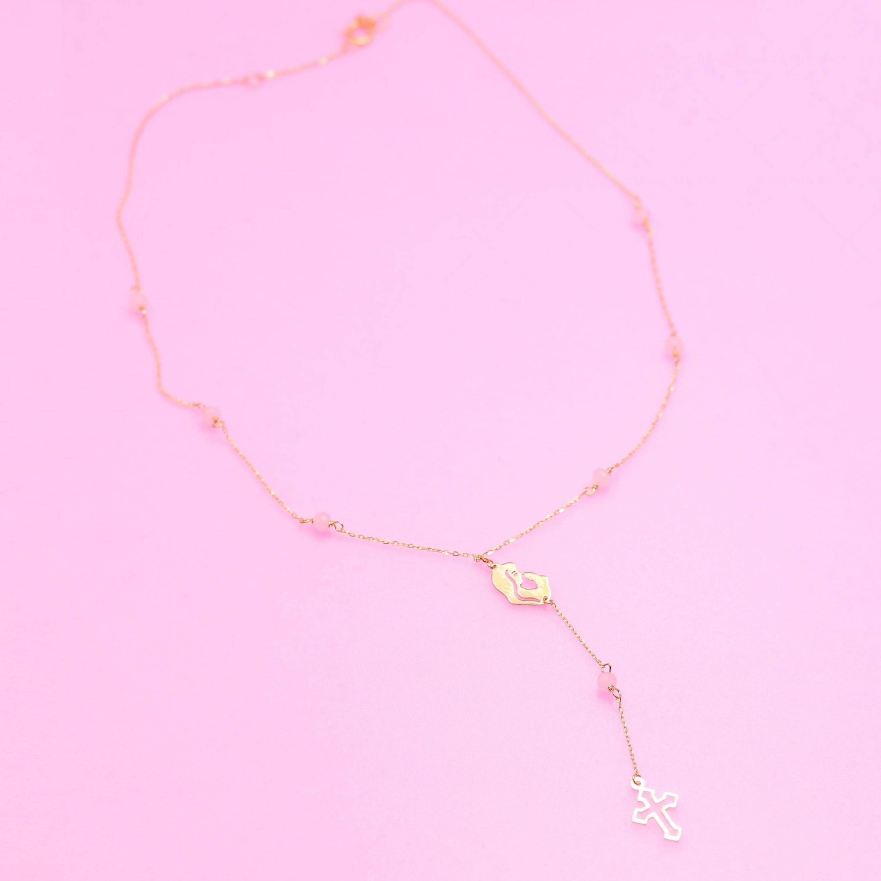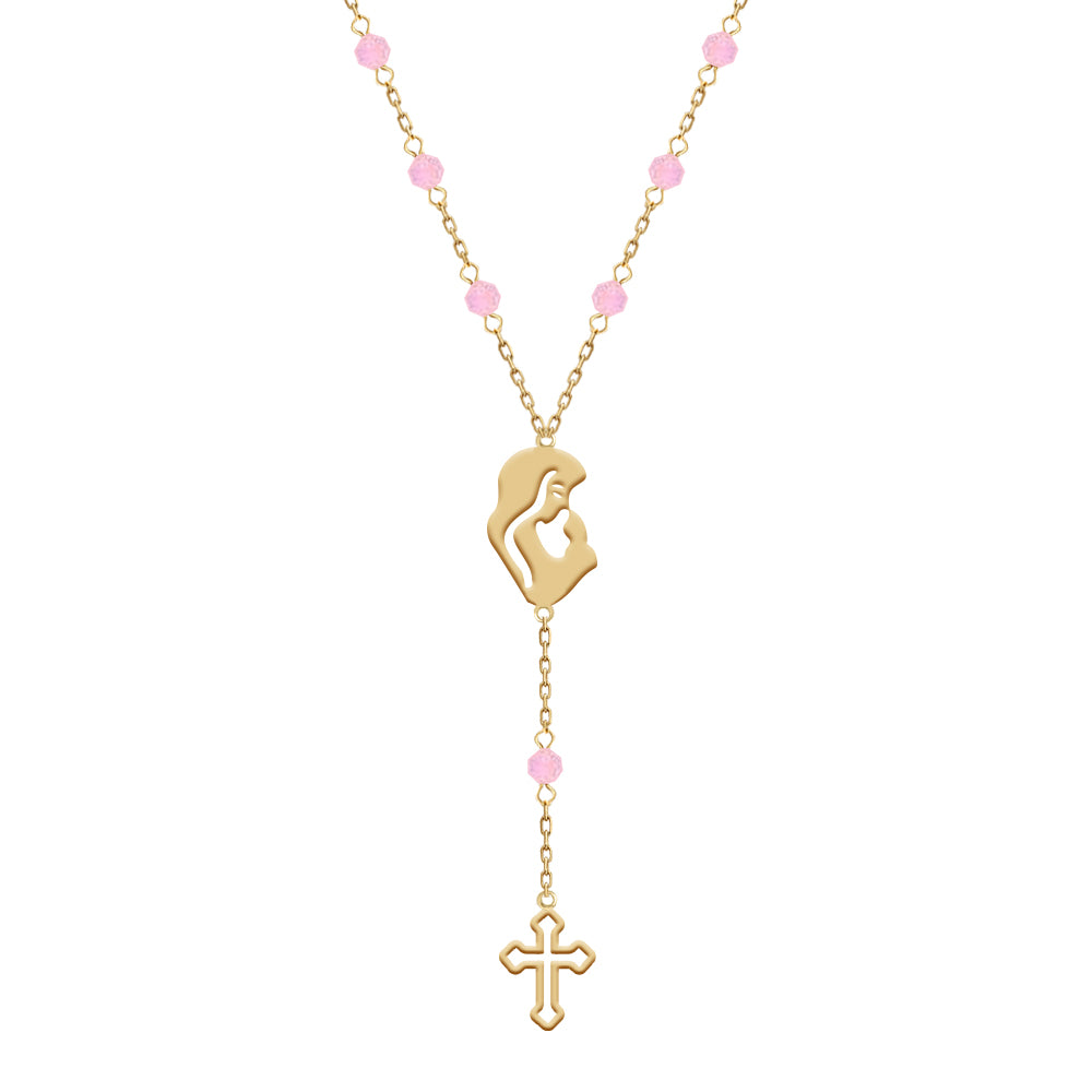 Chic appeal with this pink 18Kt Gold Mary, Cross rosary