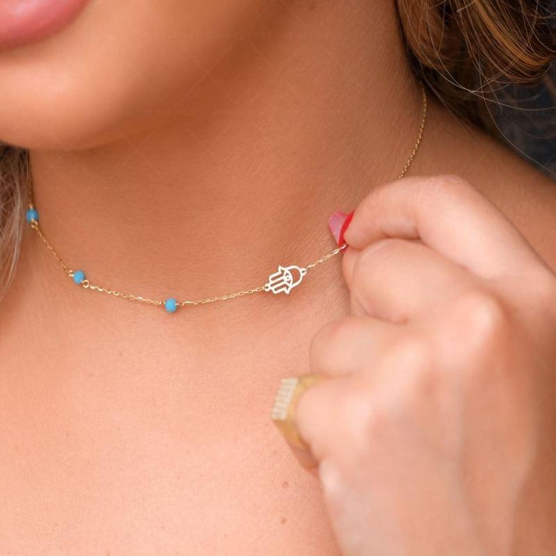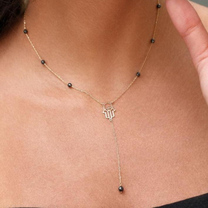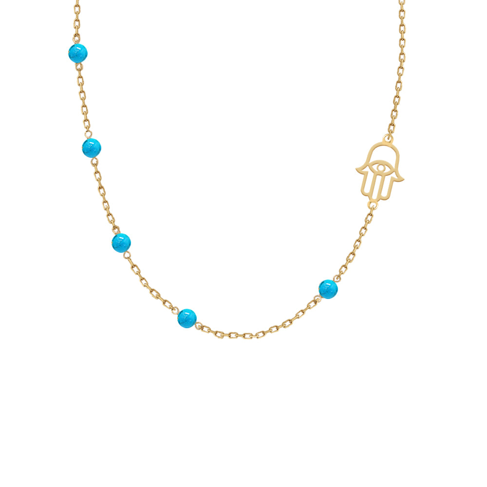 Chic appeal with this 18KT Gold Fatima's Hand necklace