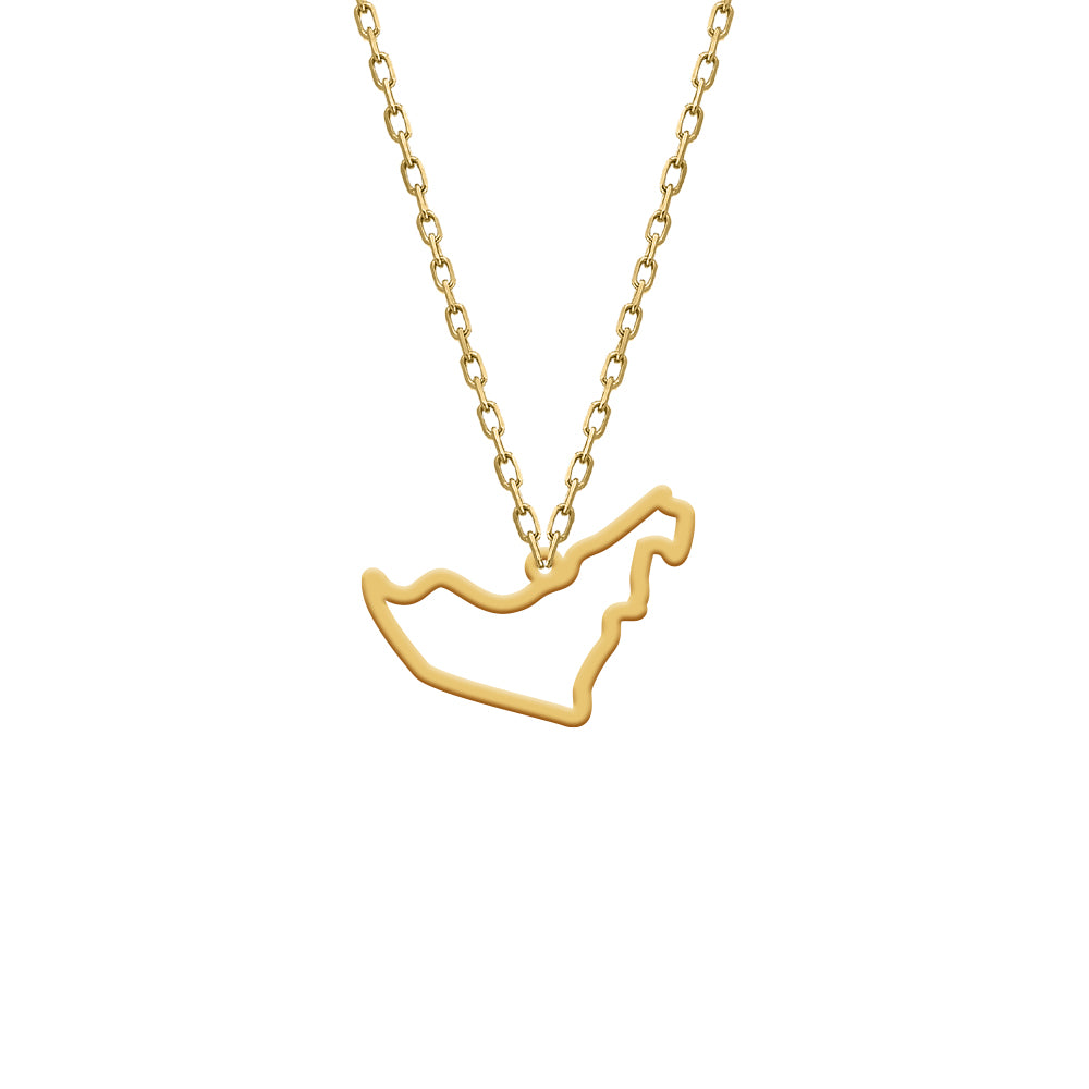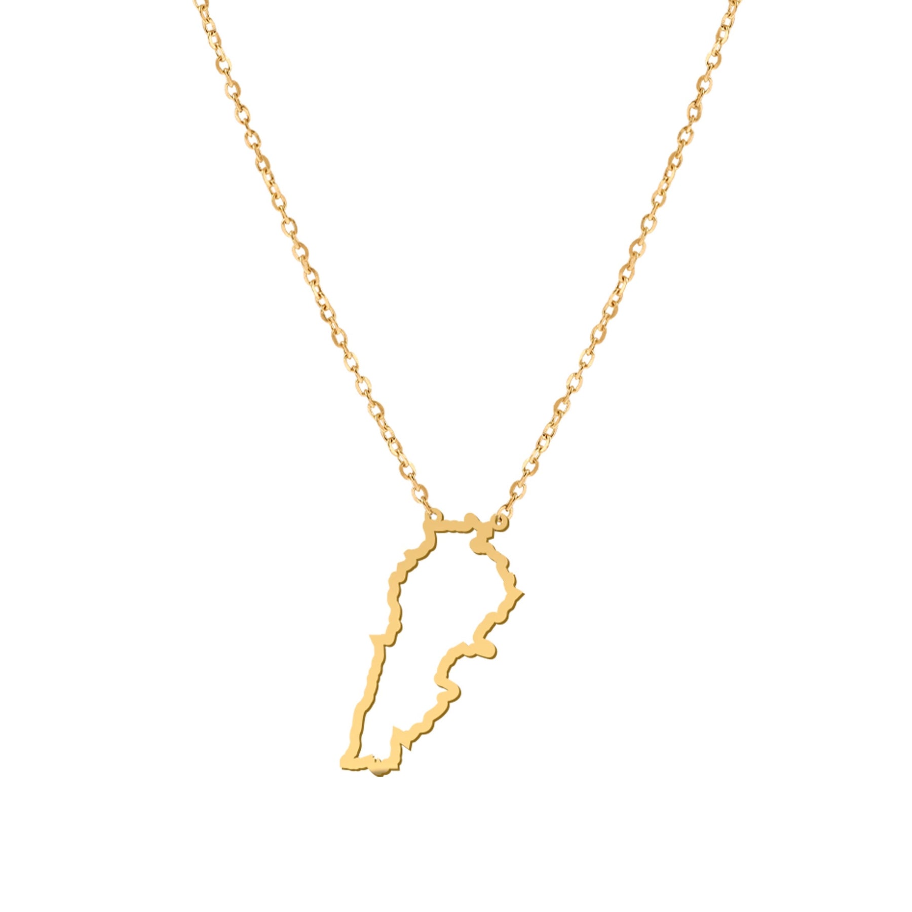 Chic appeal with this 18Kt Gold Lebanese Map Necklace.