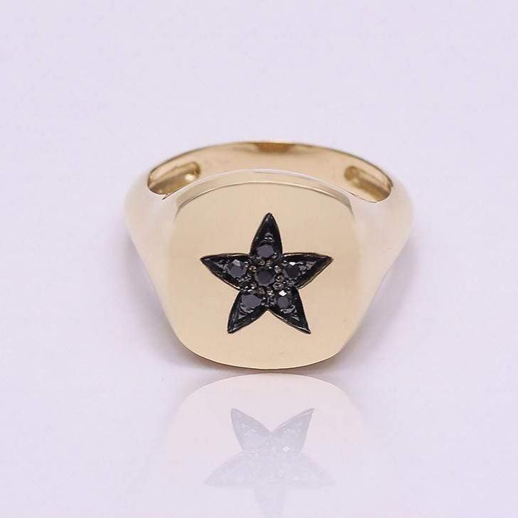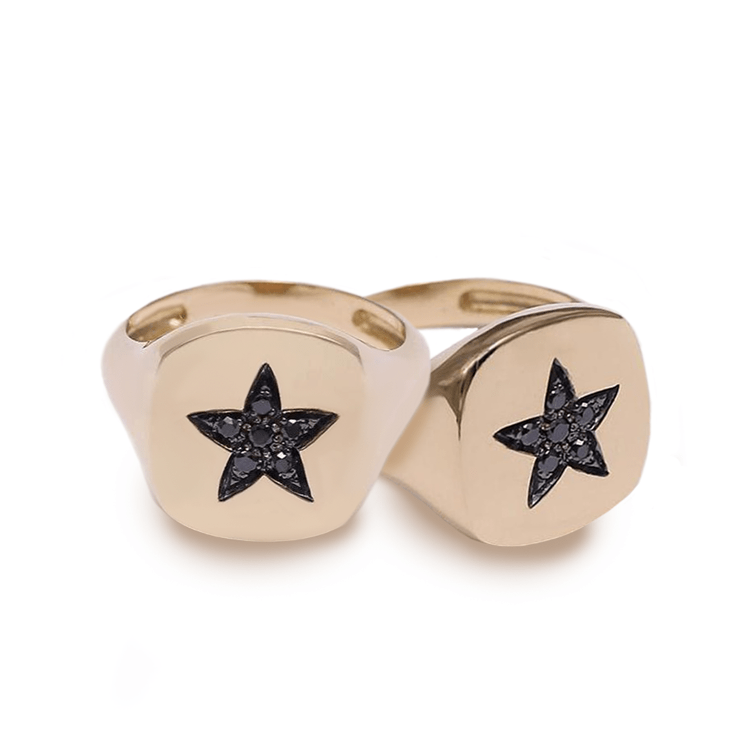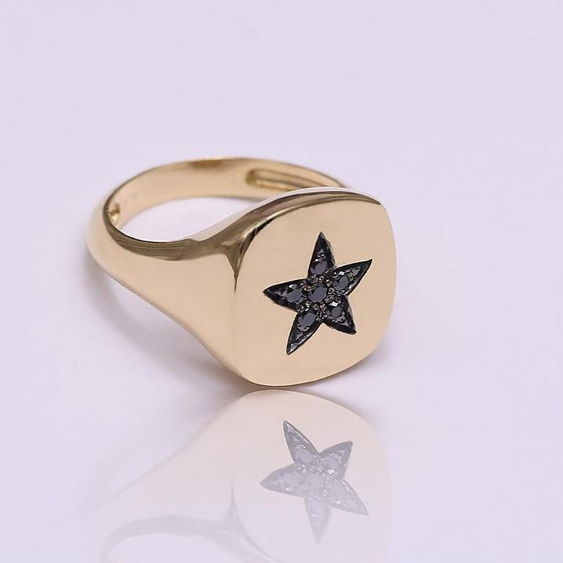 This beautiful 18-karat gold star ring combined with six black diamonds is a completely different creation. Black diamonds are a symbol of happiness, success, and elegance. They are known for having an eternal shine, so you can wear them for years to come.