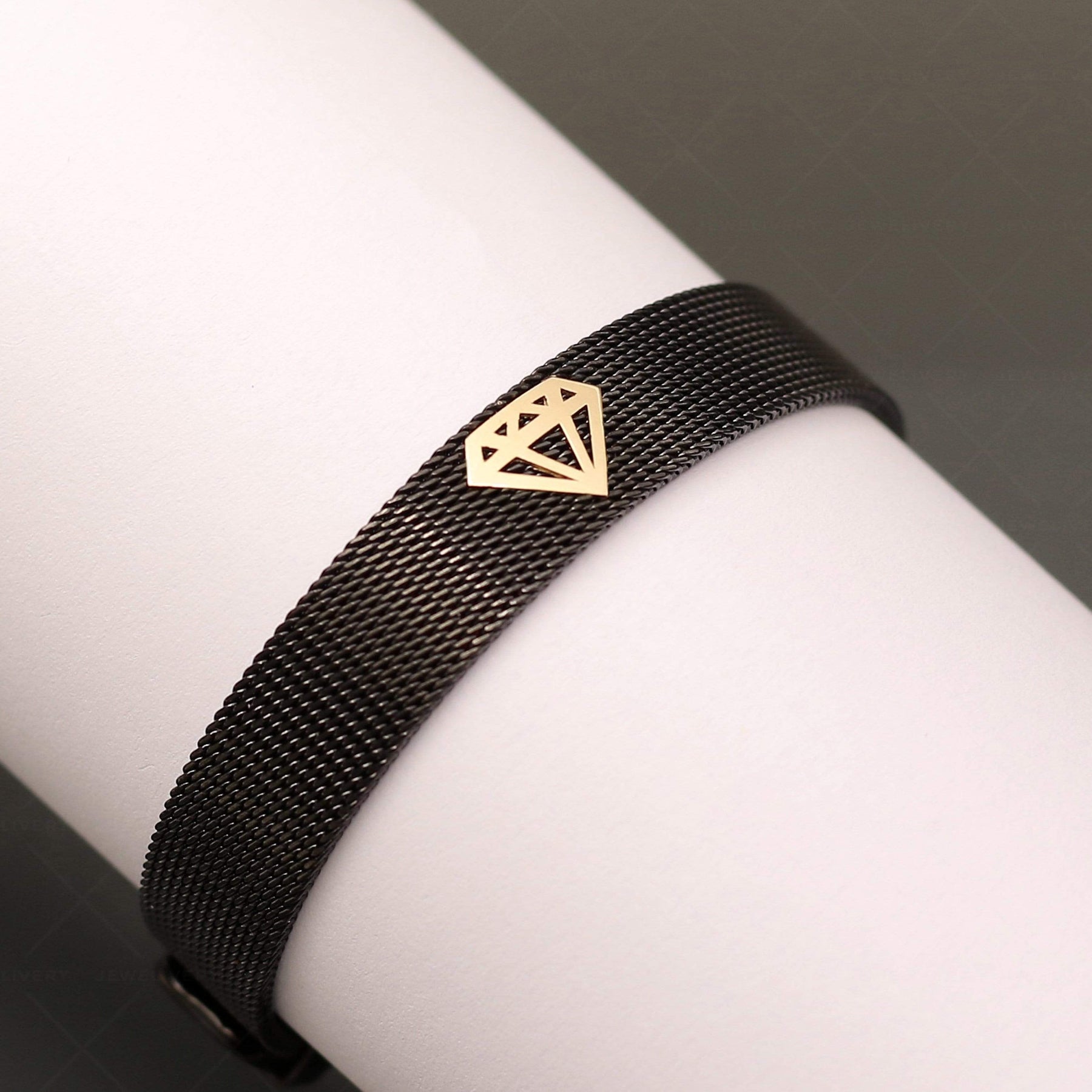 This stylish bracelet features a gorgeous band of stainless steel. Laser welding techniques are used to create a shiny, glossy finish on the diamond 18KT gold. This re-sizable bracelet is ideal for women or as a gift that will not fade in time.
