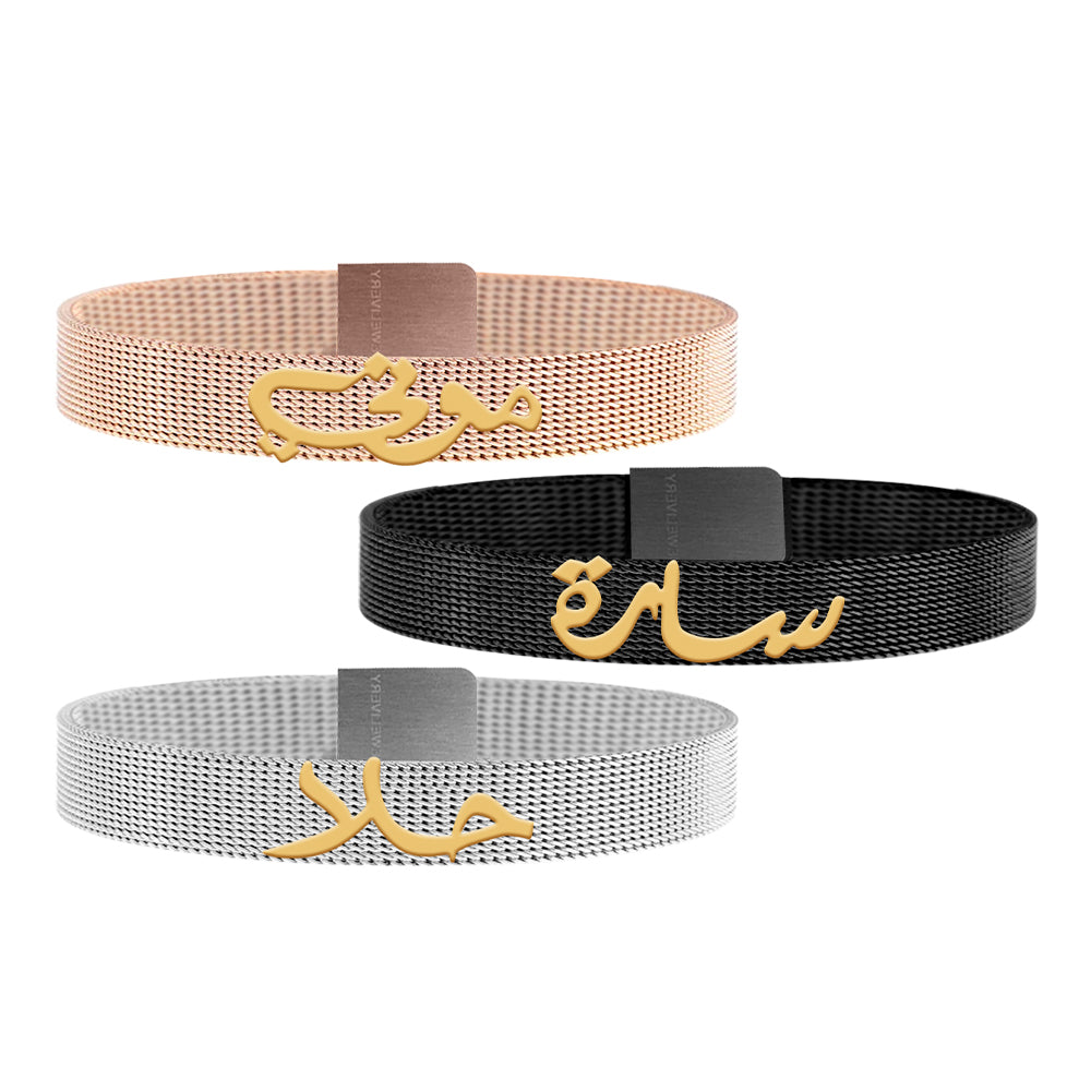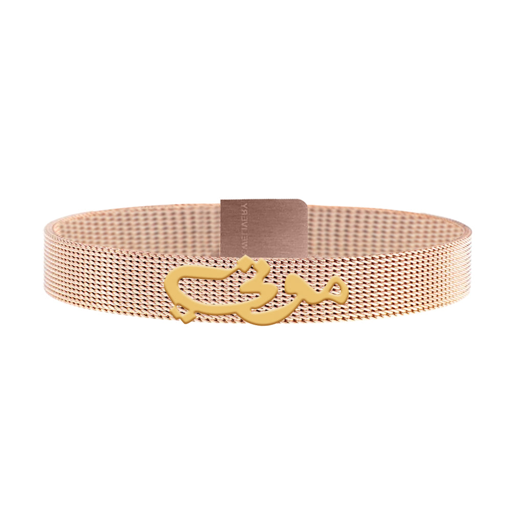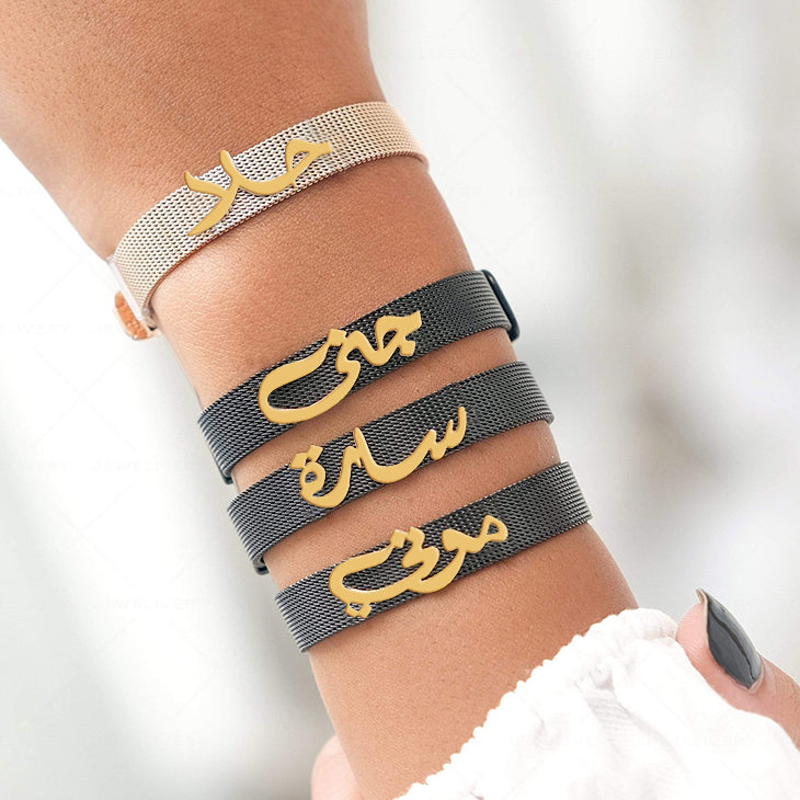 Be the most glamorous girl in the room by wearing this gorgeous bracelet. This 18kt gold custom name bracelet with up to 8 letters is made of 18-karat gold and stainless steel.