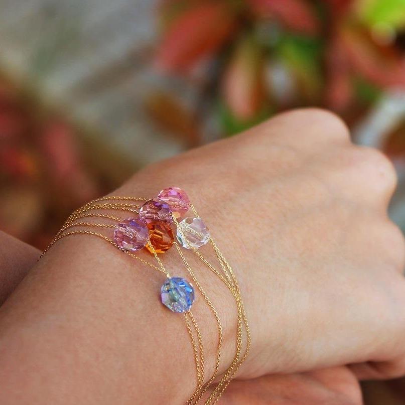 This 18-karat gold birthstone bracelet is a lovely gift for a loved one.