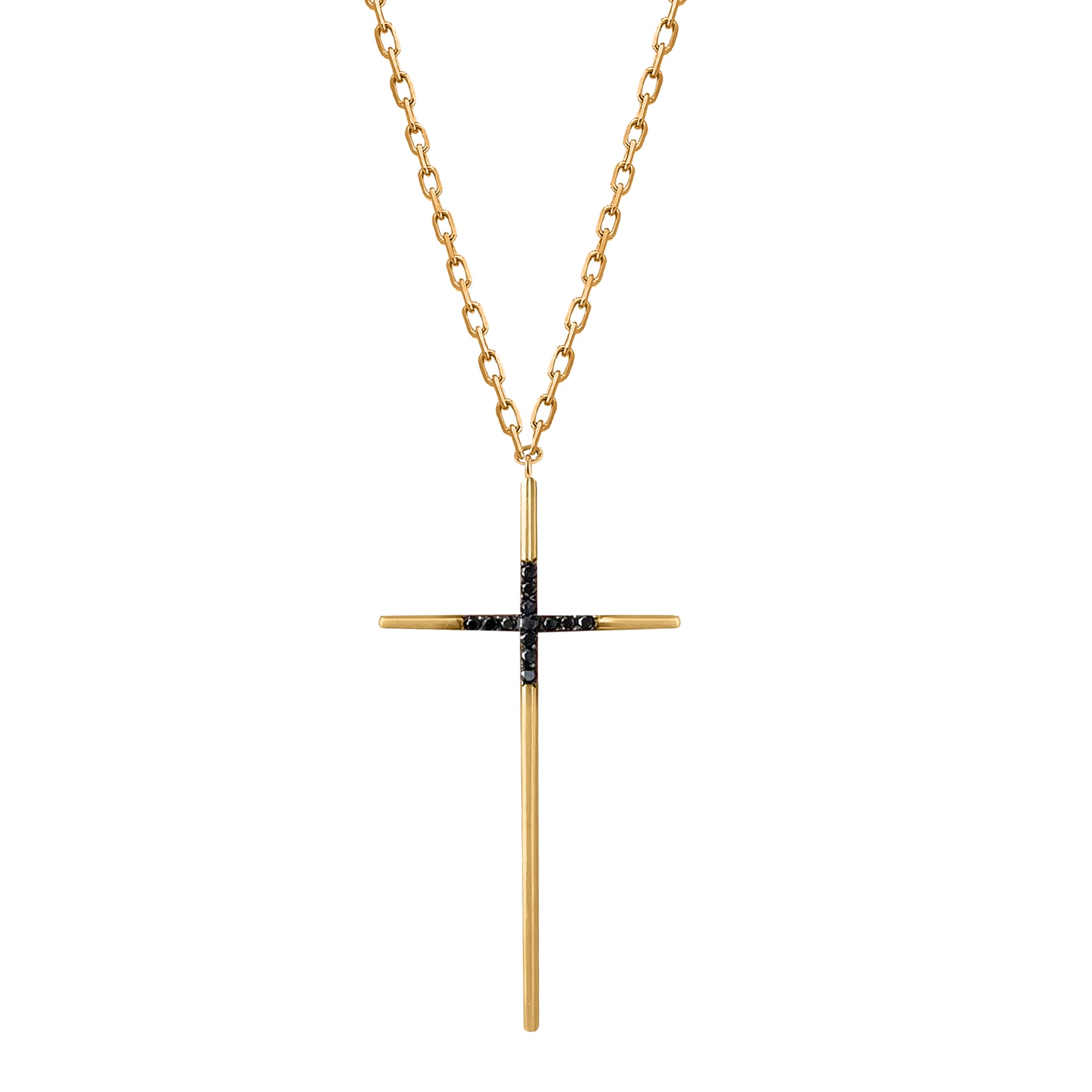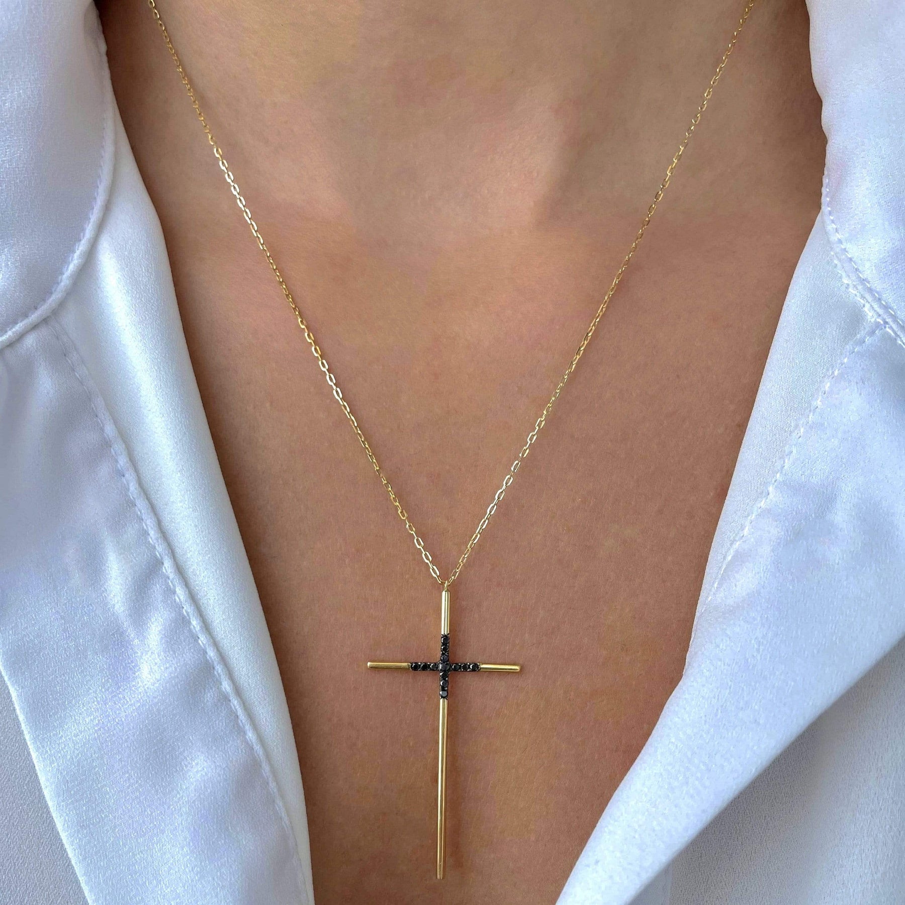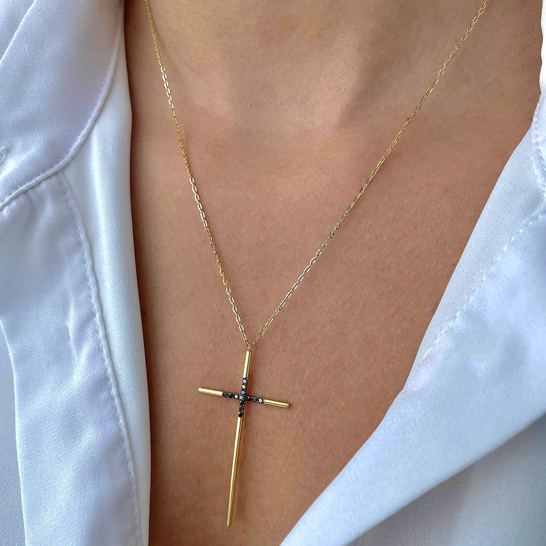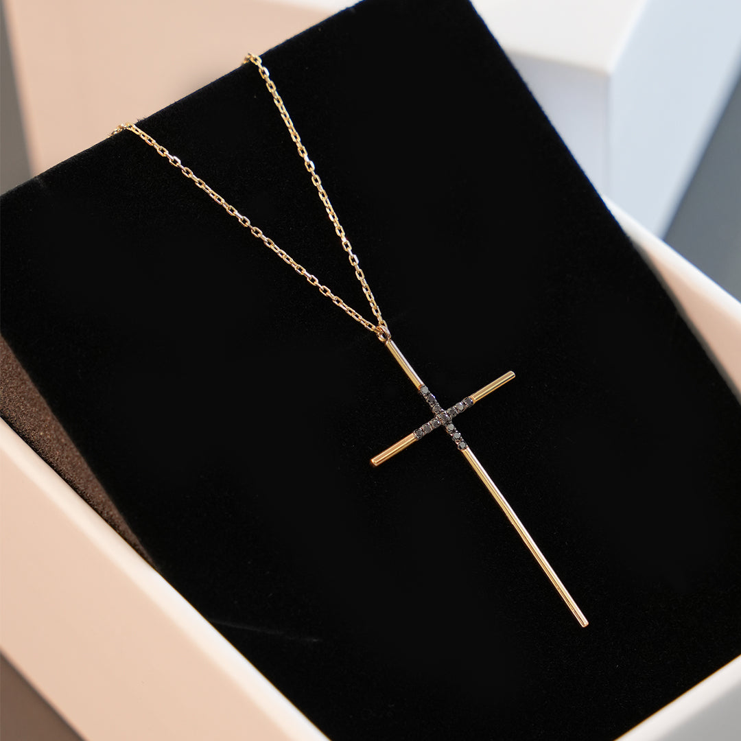 This is a beautiful and modern looking 18Kt Gold Cross pendant. The pendant and chain are made of 18Kt Gold.
