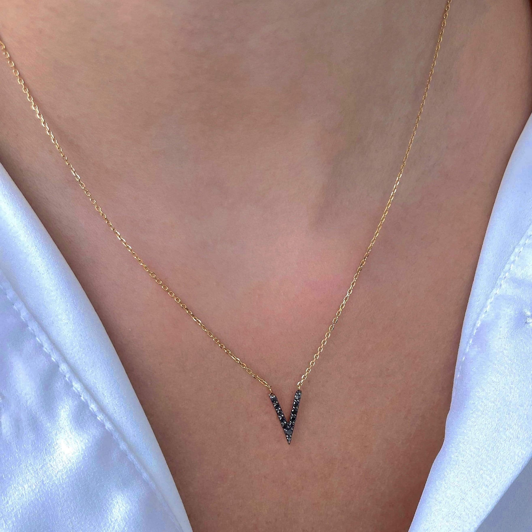 This is a beautiful and modern looking 18Kt Gold V necklace.