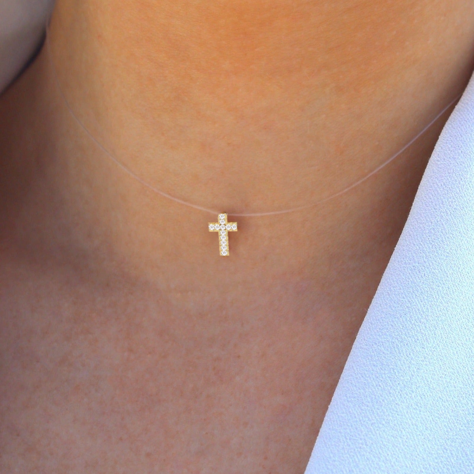 It is made with a fishing line and an 18k gold lock, allowing the wearer to feel comfortable and secure while maintaining style on any occasion.